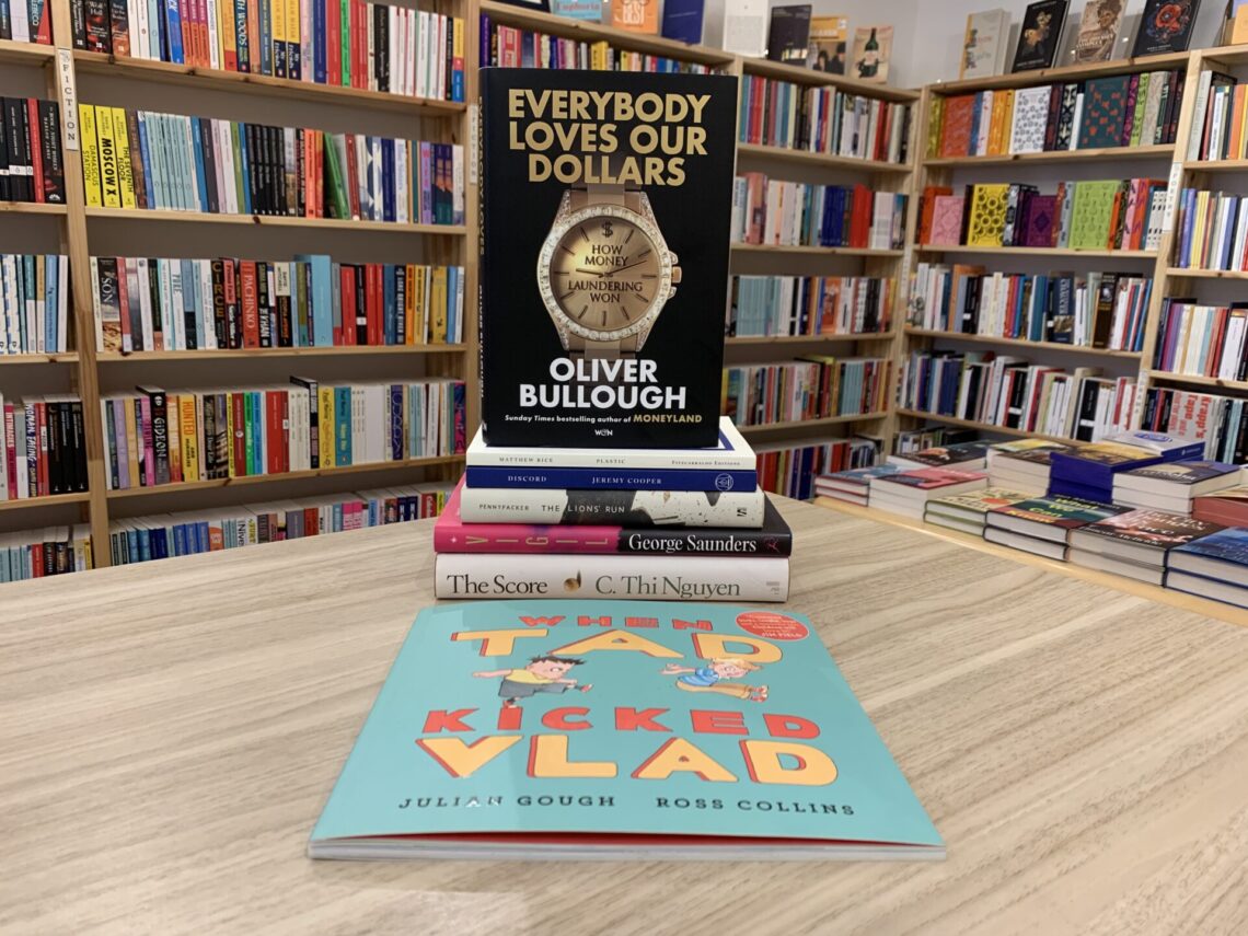 From one box alone this week we unpacked a book-length poem about a twelve-hour shift in a plastic factory (superb), a picture book showing how a moment of frustration can result in a kick being passed around the world, affecting everyone from postmen to presidents to nuns (outrageous, new favourite) and a novel about a composer and saxophonist working together on a piece to be played at the Proms, aiming at greatness and struggling for harmony (discordant, thorny, brilliant).
